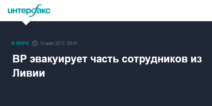 Лондон. 13 мая. INTERFAX.RU - Британская нефтяная компания BP в воскресенье объявила об эвакуации части своего вспомогательного персонала из Ливии после предупреждения "Форин офис" об ухудшении обстановки в стране.