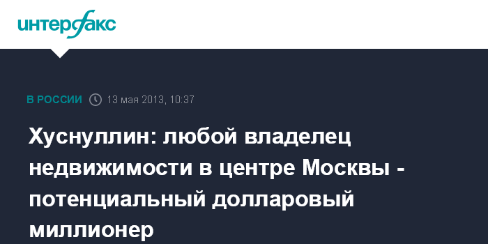 "Здесь я вообще не соглашусь. Для Москвы этот тезис не подходит. Потому что любой владелец недвижимости в Москве, если в центре, он - потенциальный миллионер в долларах", - сказал Хуснуллин в интервью газете "Ведомости" в понедельник.