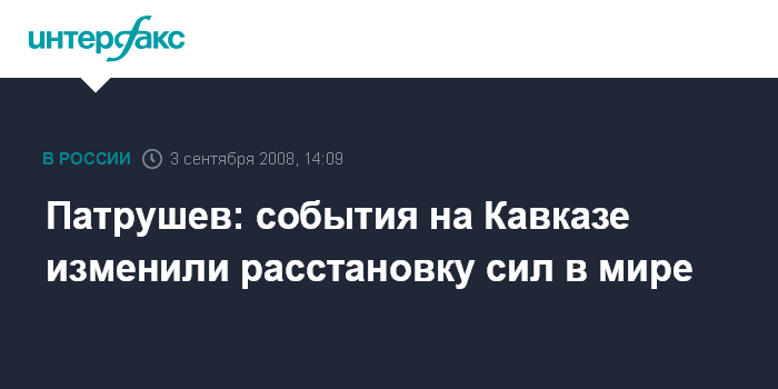 Патрушев: события на Кавказе изменили расстановку сил в мире