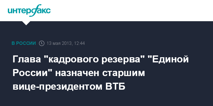 Глава "кадрового резерва" "Единой России" назначен старшим вице-президентом ВТБ