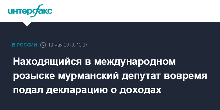 Находящийся в международном розыске мурманский депутат вовремя подал декларацию о доходах