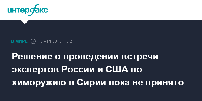 Решение о проведении встречи экспертов России и США по химоружию в Сирии пока не принято