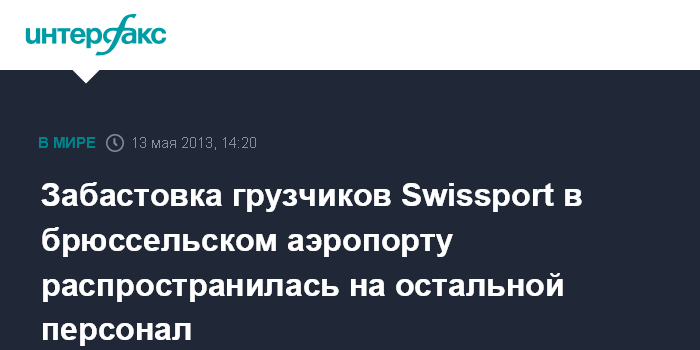 Брюссель. 13 мая. INTERFAX.RU - К забастовке в понедельник в Брюсселе работников швейцарской компании по обслуживанию аэропортов Swissport, начатой накануне грузчиками, присоединились другие категории персонала этого предприятия, сообщают бельгийские СМИ.
