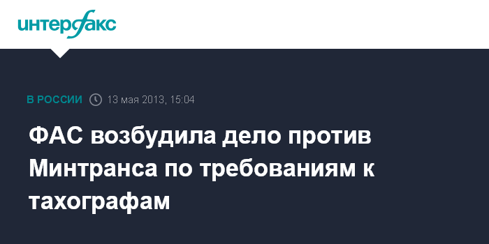 Артемьев пояснил, что основанием для возбуждения дела по признакам нарушения антимонопольного законодательства послужил приказ Минтранса России, которым утверждаются требования к тахографам (устройствам контроля за режимом труда и отдыха водителя - ИФ), устанавливаемым на грузовые и коммерческие пассажирские автомобили. По мнению ФАС, Минтранс установил не функциональные требования к тахографам, а конструктивные особенности их производства, что может ограничить круг производителей тахографов. Более того, возможности по производству тахографов будут напрямую зависеть от наличия доступа к средствам криптографической защиты информации, которые сегодня, по словам Артемьева, имеет возможность производить только одна организация.