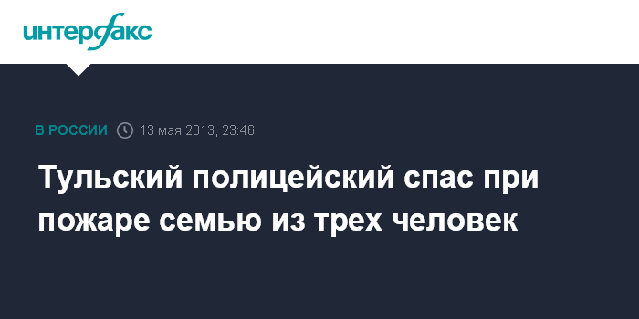 Тула. 13 мая. INTERAX.RU - Руководство УМВД по Тульской области поощрит сотрудника полиции Романа Федотова, спасшего семью из трех человек, в том числе инвалида.