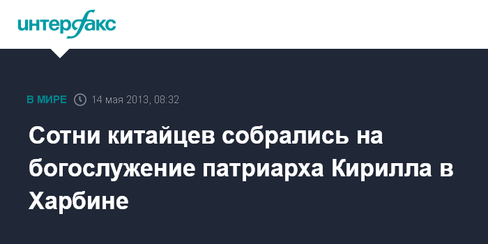 Харбин. 14 мая. INTERFAX.RU - Патриаршая литургия впервые за многие годы совершается во вторник в Харбине - историческом центре русской эмиграции в Китае.