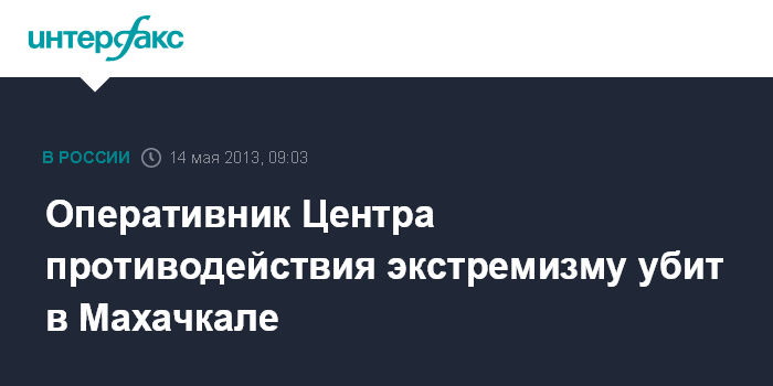Махачкала. 14 мая. INTERFAX.RU - Сотрудника Центра противодействия экстремизму МВД по Дагестану убили во вторник утром в Махачкале, сообщили "Интерфаксу" в пресс-службе МВД республики.