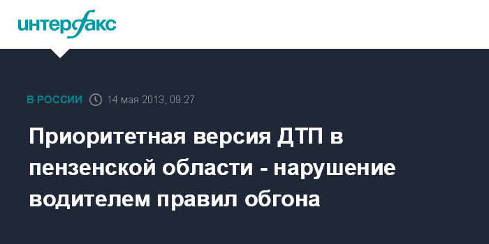 Приоритетная версия ДТП в пензенской области - нарушение водителем правил обгона