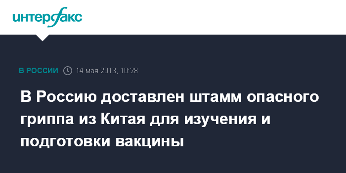 В Россию доставлен штамм опасного гриппа из Китая для изучения и подготовки вакцины
