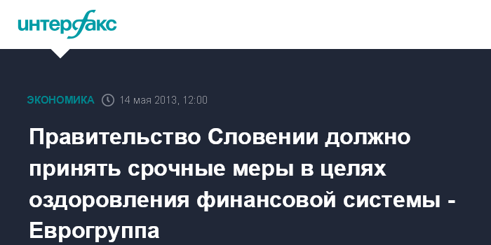 Правительство Словении должно принять срочные меры в целях оздоровления финансовой системы - Еврогруппа