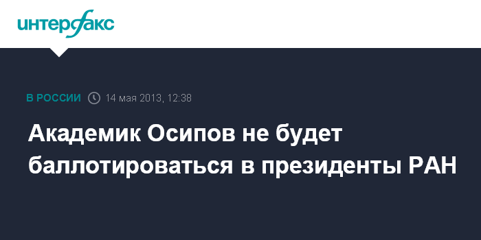Москва. 14 мая. INTERFAX.RU - Президент Российской академии наук Юрий Осипов снял свою кандидатуру с тайного голосования президиума РАН по вопросу выбора приоритетного кандидата на пост президента академии.