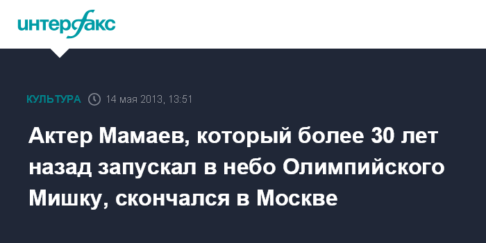 Актер Мамаев, который более 30 лет назад запускал в небо Олимпийского Мишку, скончался в Москве