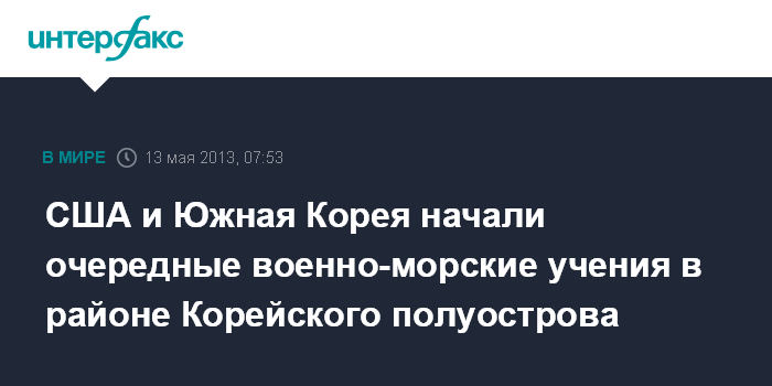 Сеул. 13 мая. ИНТЕРФАКС - Совместные военно-морские учения ВМС США и Южной Кореи в районе Корейского полуострова начались в понедельник, сообщили южнокорейские СМИ, ссылаясь на заявление высокопоставленного представителя вооруженных сил Республики Корея.