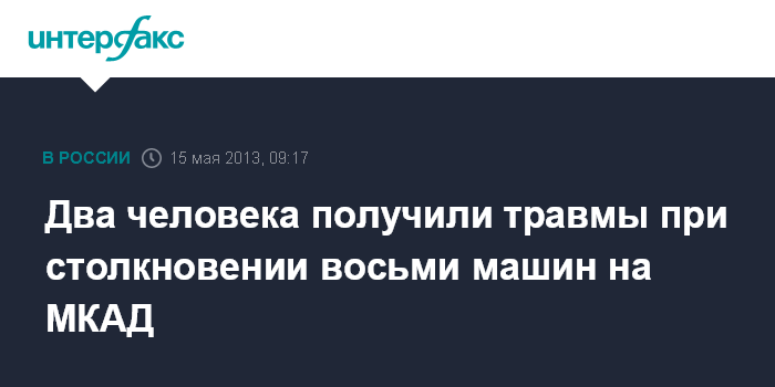 Москва. 15 мая. ИНТЕРФАКС - Восемь машин столкнулись на юге МКАД, сообщили "Интерфаксу" в пресс-службе управления ГИБДД Москвы.