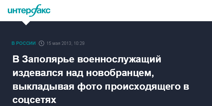 Мурманск. 15 мая. INTERFAX.RU - Мурманский военнослужащий, опубликовавший в социальной сети фотографии издевательств над сослуживцем, стал фигурантом уголовного дела, сообщает пресс-служба Главного военно-следственного управления СКР.