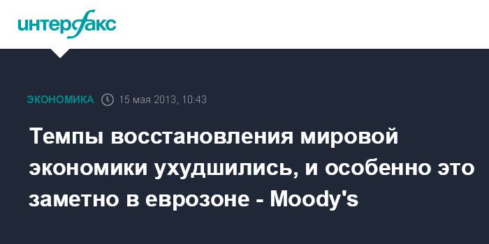 Темпы восстановления мировой экономики ухудшились, и особенно это заметно в еврозоне - Moody's