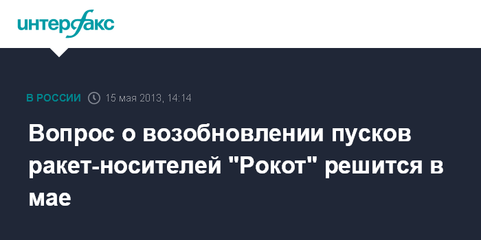 Вопрос о возобновлении пусков ракет-носителей "Рокот" решится в мае