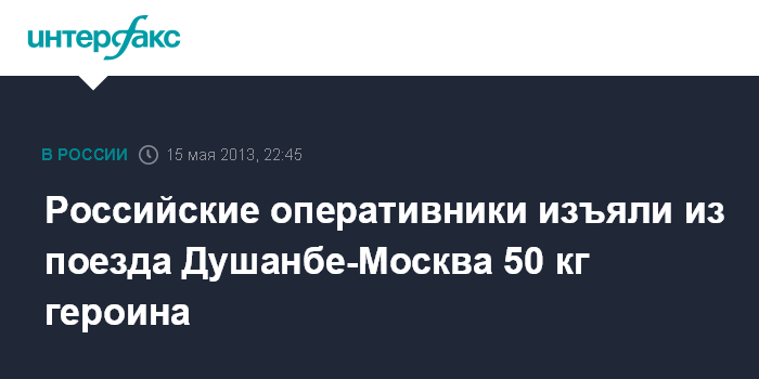 "Сегодня в очередной раз в поезде Душанбе-Москва был обнаружен героин, 50 килограммов. Очень большая партия, она была обнаружена сегодня российскими оперативными сотрудниками, что доказывает обоснованность и серьезность тех претензий, которые мы предъявляли в ходе инспекции этого поезда государственной комиссией Российской Федерации", - сказал в среду журналистам Рогозин.