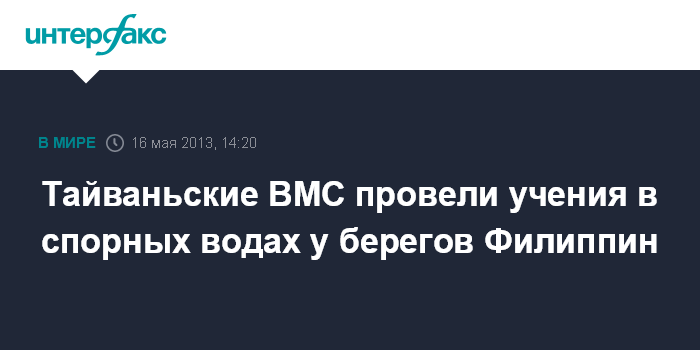 Пекин. 16 мая. INTERFAX.RU - ВМС Тайваня в четверг провели учения у северного побережья Филиппин в спорных водах в Южно-Китайском море, заявили представители тайваньского министерства обороны.