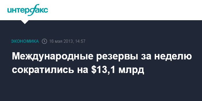 Таким образом, за неделю международные резервы снизились на $13,1 млрд.