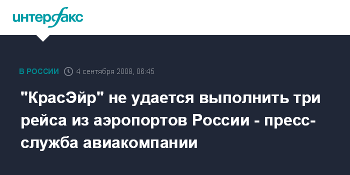 "КрасЭйр" не удается выполнить три рейса из аэропортов России - пресс- служба авиакомпании