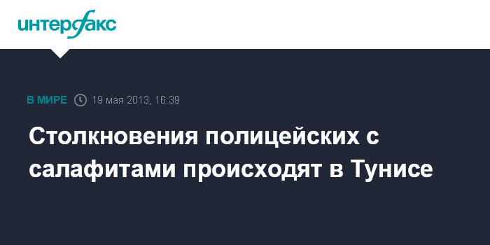 Лондон. 19 мая. INTERFAX.RU - Сторонники радикальной исламистской группировки "Ансар аш-шариа" вступают в столкновения с сотрудниками сил правопорядка в Тунисе, сообщает в воскресенье британская телерадиокорпорация BBC.