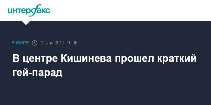 Кишинев. 19 мая. INTERFAX.RU - Гей-парад в центре Кишинева, который прошел под усиленной охраной полиции, собрал лишь несколько десятков участников и дипломатов из Европы и США и занял несколько минут, передает корреспондент "Интерфакса".
