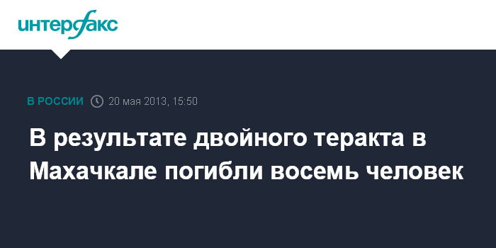 "С интервалом в несколько минут были взорваны два автомобиля. По предварительным данным, погибли как минимум восемь человек. Количество раненых уточняется. Повреждено более двух десятков автомобилей", - сказал представитель СУ СКР по Дагестану.