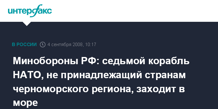 Москва. 4 сентября. INTERFAX.RU - Уже седьмой по счету корабль ВМС НАТО, не принадлежащий странам региона, прибывает в Черное море, сообщили "Интерфаксу-АВН" в среду в российском военном ведомстве.