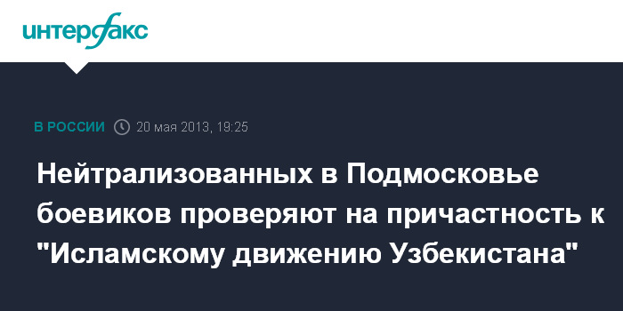 Он отметил, что пока неизвестно, в какую экстремистскую группировку входили ликвидированные в Орехово-Зуево боевики. "В настоящий момент проверяется информация об их возможной причастности к террористическому движению "Исламское движение Узбекистана". Кроме того, сотрудники спецслужб пытаются выяснить контакты и связи боевиков среди жителей московского региона", - сказал собеседник агентства.