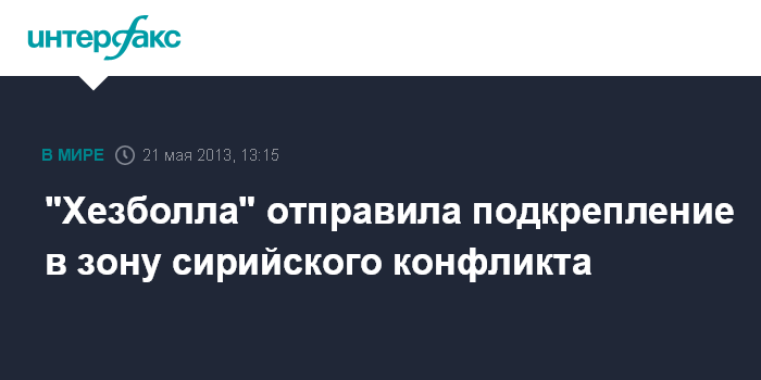 Бейрут. 21 мая. INTERFAX.RU - Ливанское движение "Хезболла" направила новые группы бойцов в сирийский город Кусейр на границе с Ливаном для оказания помощи армии Сирии, сообщает во вторник сайт египетской газеты Al Ahram со ссылкой на неназванные источники, близкие к "Хезболле".