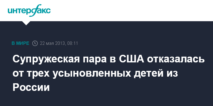 Супружеская пара в США отказалась от трех усыновленных детей из России