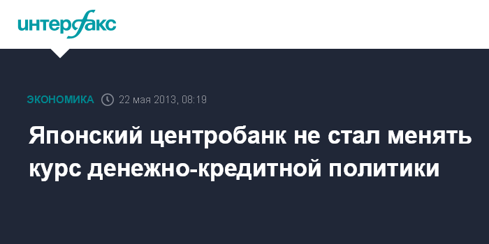 22 мая. FINMARKET.RU - Банк Японии по итогам завершившегося в среду двухдневного заседания не стал вносить каких-либо изменений в денежно-кредитную политику, как и ожидали участники рынка. При этом японский ЦБ констатировал тенденцию к улучшению экономической конъюнктуры, сообщает MarketWatch.