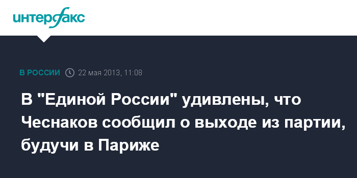 При этом представитель руководства "Единой России" выразила недоумение в связи с тем, что заявление о выходе из партии Чеснаков сделал из Парижа, где, как она заметила, он находится практически неделю.