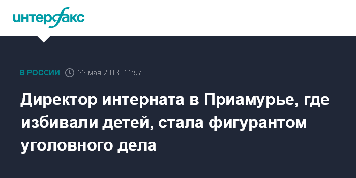 Москва. 22 мая. INTERFAX.RU - В отношении бывшего директора школы-интерната в Амурской области, где старшие дети избивали младших, возбуждено уголовное дело по статье "халатность", сообщил "Интерфаксу" официальный представитель СКР Владимир Маркин.