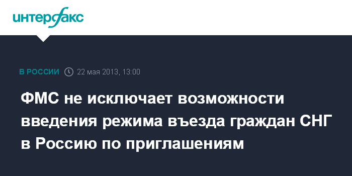 Москва. 22 мая. INTERFAX.RU - Для упорядочения миграционных потоков может быть введен въезд в РФ граждан СНГ по приглашениям, заявил глава ФМС Константин Ромодановский.