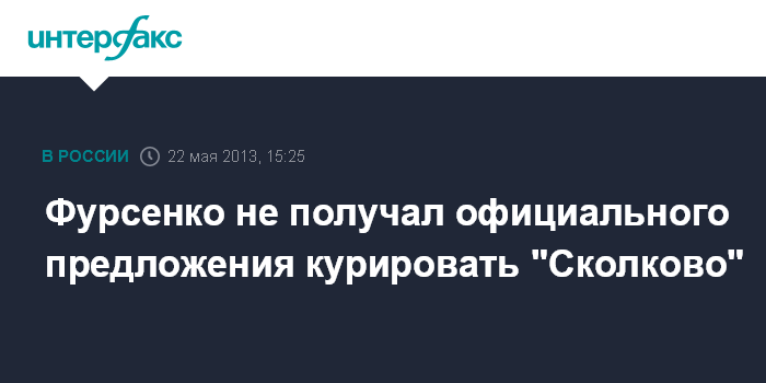 Сочи. 22 мая. INTERFAX.RU - Помощник президента РФ Андрей Фурсенко не получал официального предложения курировать проект "Сколково".