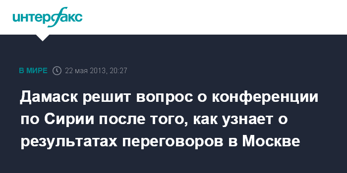 Дамаск решит вопрос о конференции по Сирии после того, как узнает о результатах переговоров в Москве