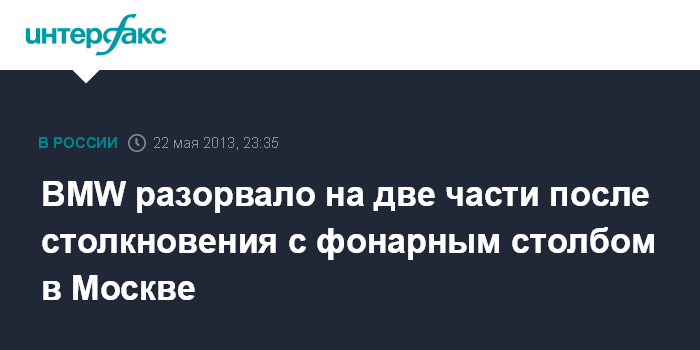 Москва. 22 мая. INTERFAX.RU - Автомобиль BMW разорвало пополам после удара об столб на юго-востоке столицы, сообщили "Интерфаксу" в среду в пресс-службе управления ГИБДД Москвы.