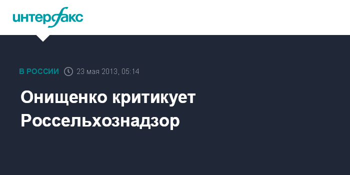 Москва. 23 мая. ИНТЕРФАКС - Руководитель Роспотребнадзора, главный государственный санитарный врач РФ Геннадий Онищенко не доволен позицией Россельхознадзора в сфере контроля за качеством и безопасностью пищевой продукции.