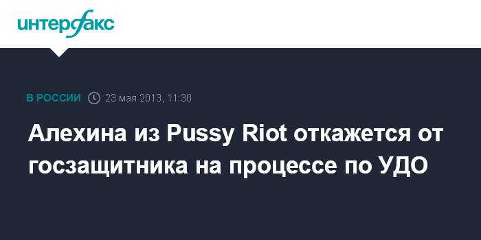 Москва. 23 мая. INTERFAX.RU - Березниковский районный суд решил назначить государственного защитника для рассмотрения вопроса об условно-досрочном освобождения участнице панк-группы Pussy Riot Марии Алехиной, сообщила "Интерфаксу" ее адвокат Ирина Хрунова в четверг.
