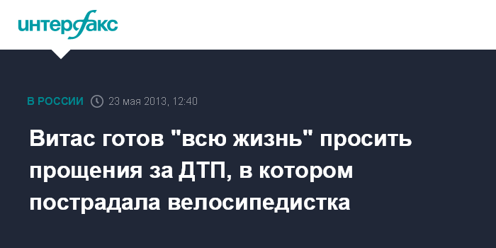"Мне очень чуждо и дико слышать слова уголовного обвинения в свой адрес. Я неоднократно говорил, что виноват в том, что по своей неосторожности и невнимательности столкнулся с колесом велосипедистки. Я этот факт признаю, и, поверьте мне, не устану на протяжении, наверное, всей своей жизни извиняться перед этим человеком и перед всеми, кто пострадал в этой чрезвычайной ситуации, и конечно же, перед сотрудниками правоохранительных органов, которые тоже пострадали в этот день", - сказал Витас, прибывший в среду на беседу со следователем в межрайонный следственный отдел Останкинского района ГСУ СК РФ по Москве.