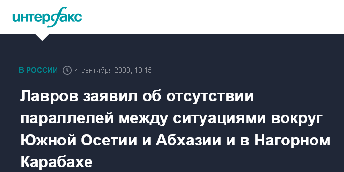 Лавров заявил об отсутствии параллелей между ситуациями вокруг Южной Осетии и Абхазии и в Нагорном Карабахе