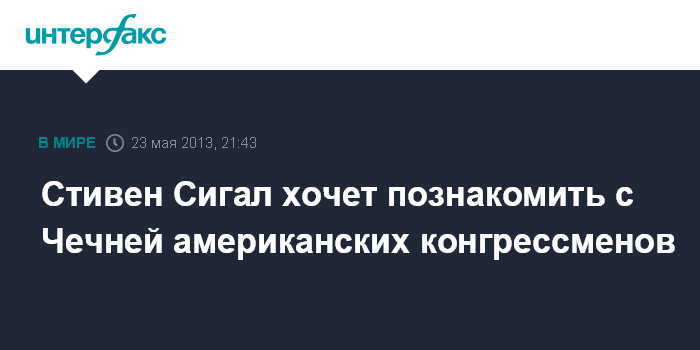 Грозный. 23 мая. INTERFAX.RU - Чеченскую Республику в скором времени посетит делегация конгрессменов США, сообщил в программе "Диалоги" телеканала "Грозный" находившийся в Грозном по приглашению президента Чечни Рамзана Кадырова известный американский актер Стивен Сигал.