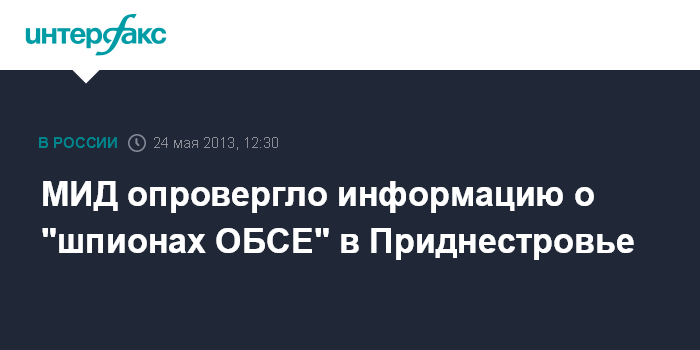 Москва. 24 мая. INTERFAX.RU - МИД России опровергает информацию о том, что в Приднестровье были задержаны представители ОБСЕ, занимающиеся разведкой.
