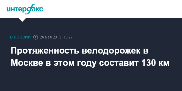 Москва. 24 мая. INTERFAX.RU - В Москве продолжается программа по созданию сети велодорожек, сообщил мэр столицы Сергей Собянин на оперативном совещании городского правительства в пятницу. "Нам необходимо интенсивно заниматься обустройством специальных велодорожек, парковок, специальной навигации. В этом году обустроенные велодорожки Москвы достигнут 130 км", - сказал Собянин.