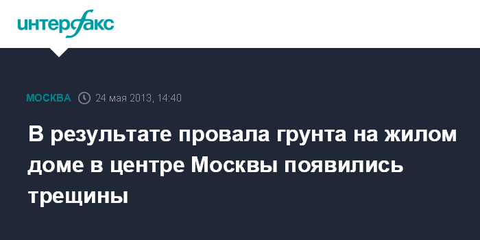 Москва. 24 мая. INTERFAX.RU - в центре столицы неподалеку от Белорусского вокзала в пятницу днем произошел провал грунта.