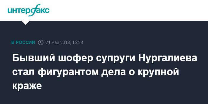 Москва. 24 мая. INTERFAX.RU - В отношении бывшего водителя, который перевозил супругу экс-министра внутренних дел РФ Рашида Нургалиева, возбуждено уголовное дело по факту кражи в особо крупном размере на складе в Солнечногорском районе Московской области", сообщил "Интерфаксу" источник в правоохранительных органах.
