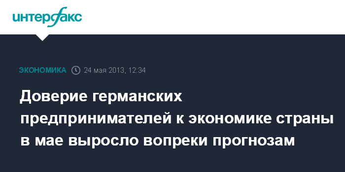 24 мая. FINMARKET.RU - В мае 2013 года индекс доверия германских предпринимателей к экономике страны вырос впервые за три месяца - до 105,7 пункта со 104,4 пункта месяцем ранее, свидетельствуют данные исследовательского института IFO.