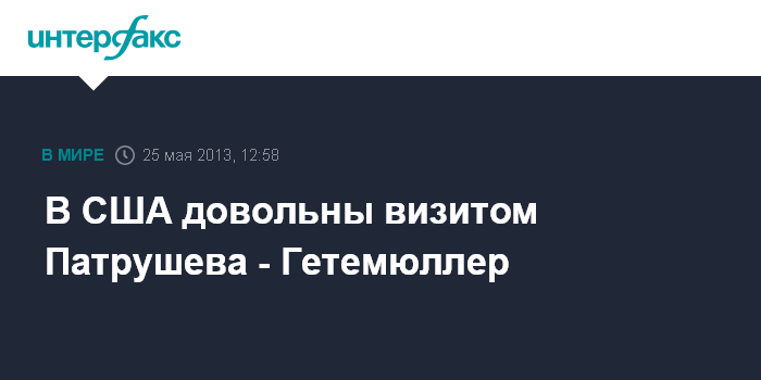 Москва. 25 мая. INTERFAX.RU - В США довольны итогами визита секретаря Совета безопасности России Николая Патрушева в Вашингтон и рассчитывают на предстоящие положительные дискуссии с РФ по проблематике противоракетной обороны.